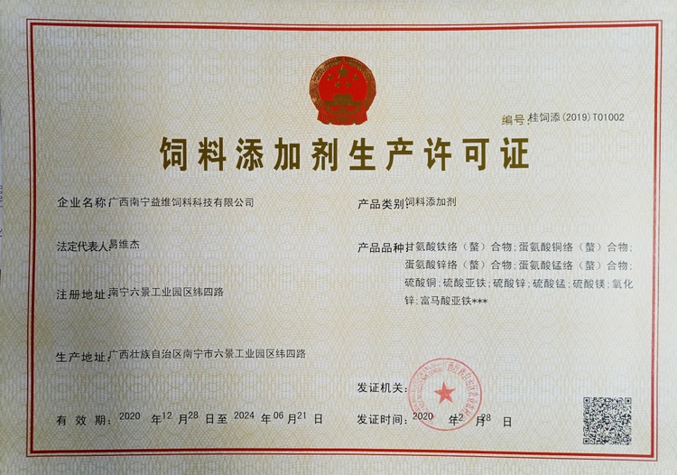 益維—飼料添加劑生產(chǎn)許可證